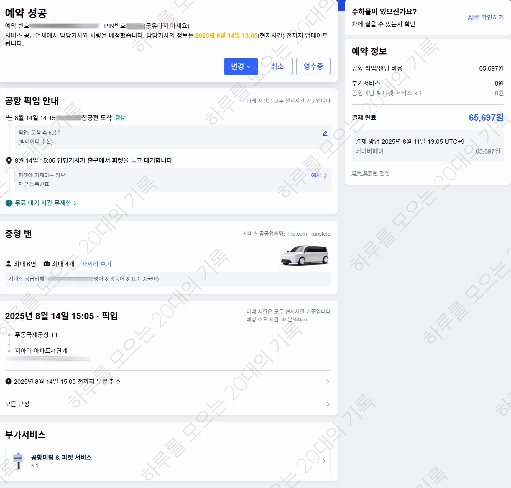 공항에서 숙소까지 디디택시 타려고 했는데, 공항에서 디디택시 타는 게 생각보다 번거롭다는 블로그 글을 봐서 편하게 이동하려고 트립닷컴에서 픽업 택시 예약해서 이용했어요.